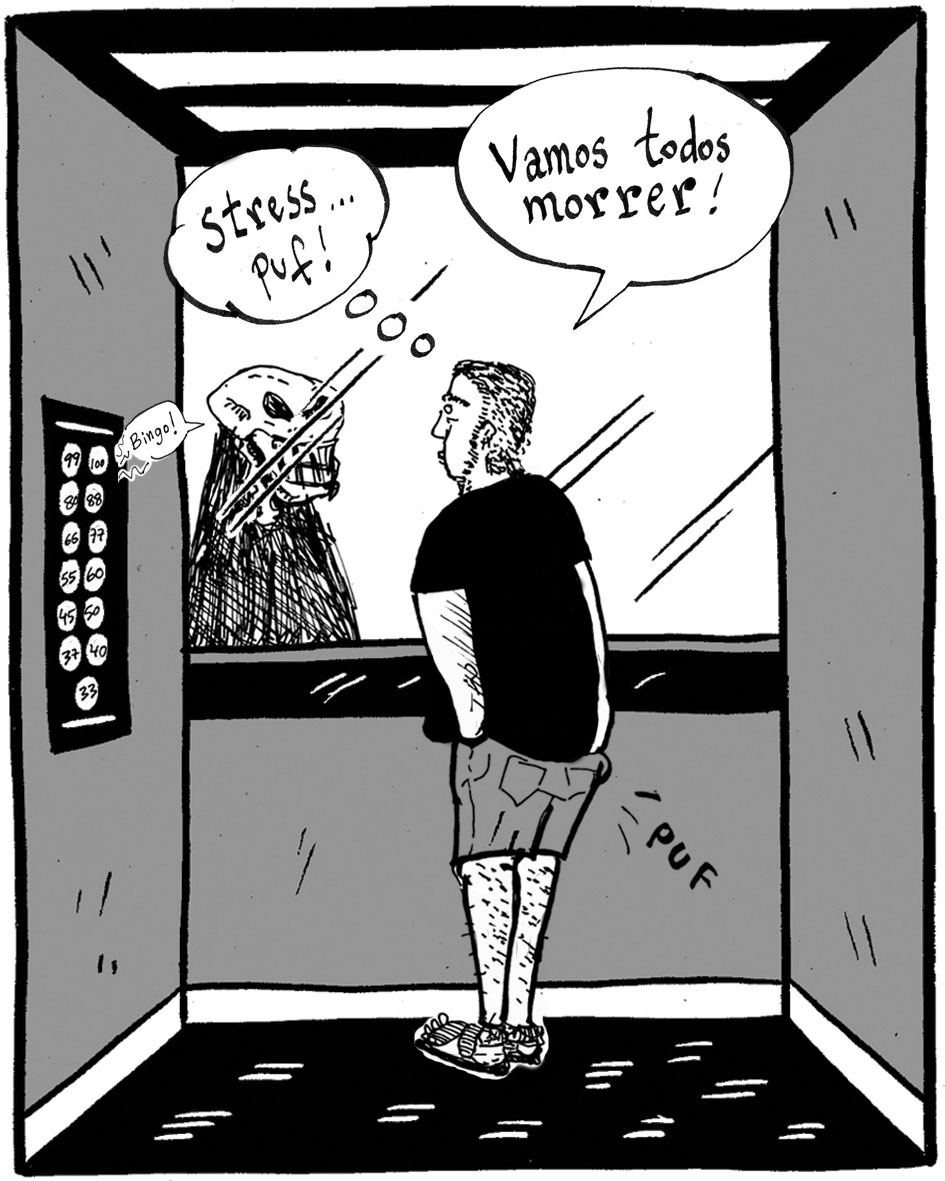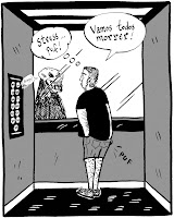 Fui convidado para o Pindura 2011 - um calendário com 365 desenhos, 3 por autor! O tema será o elevador, sendo curioso que foi necessário usar aquele desenho da direita como "template"... Sabe bem ser convidado para fazer coisas, cara, e meti-me mãos à obra! Eis o esboço de um dos três desenhos, seguido pelo desenho "acabado" que falta meter na moldura - ou no elevador, neste caso!